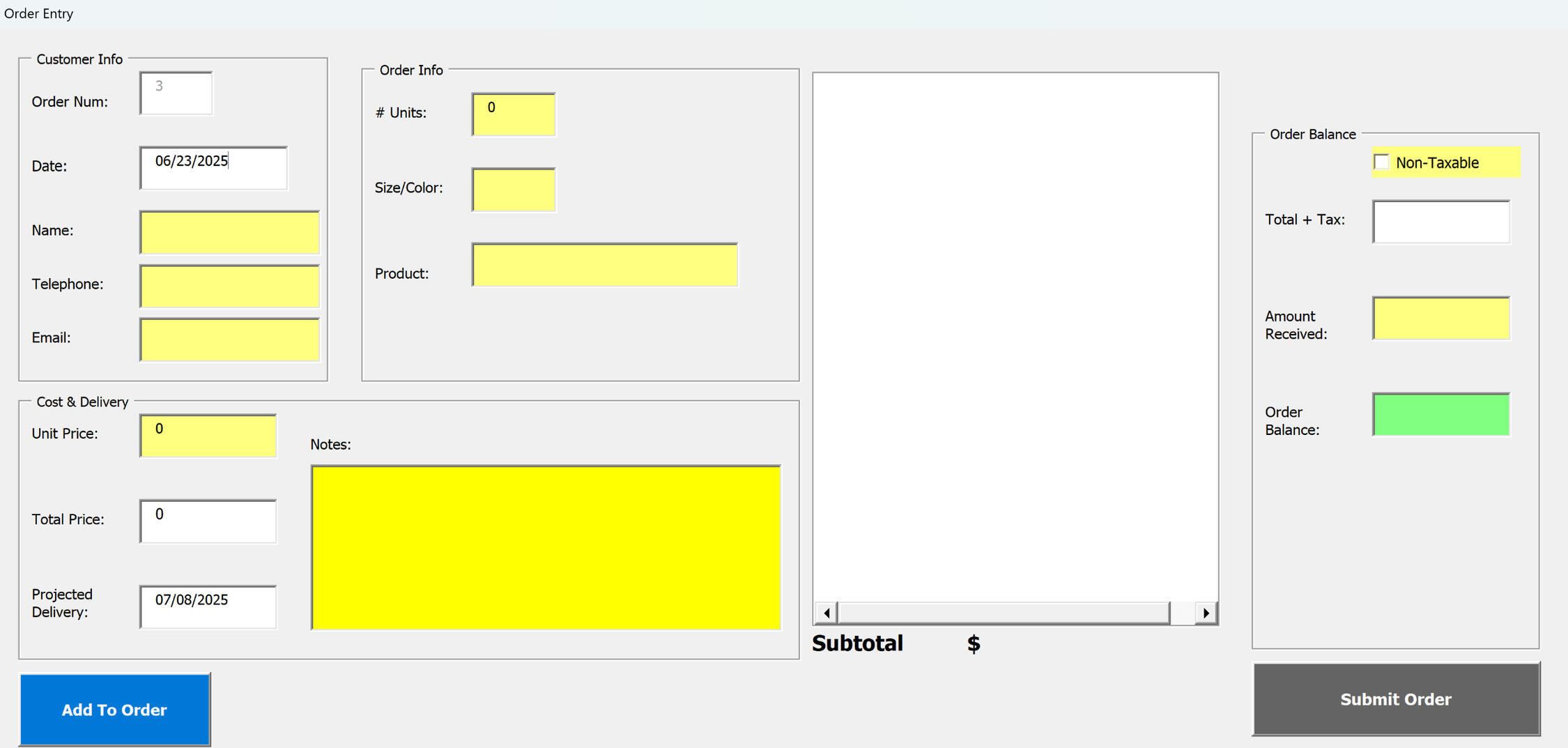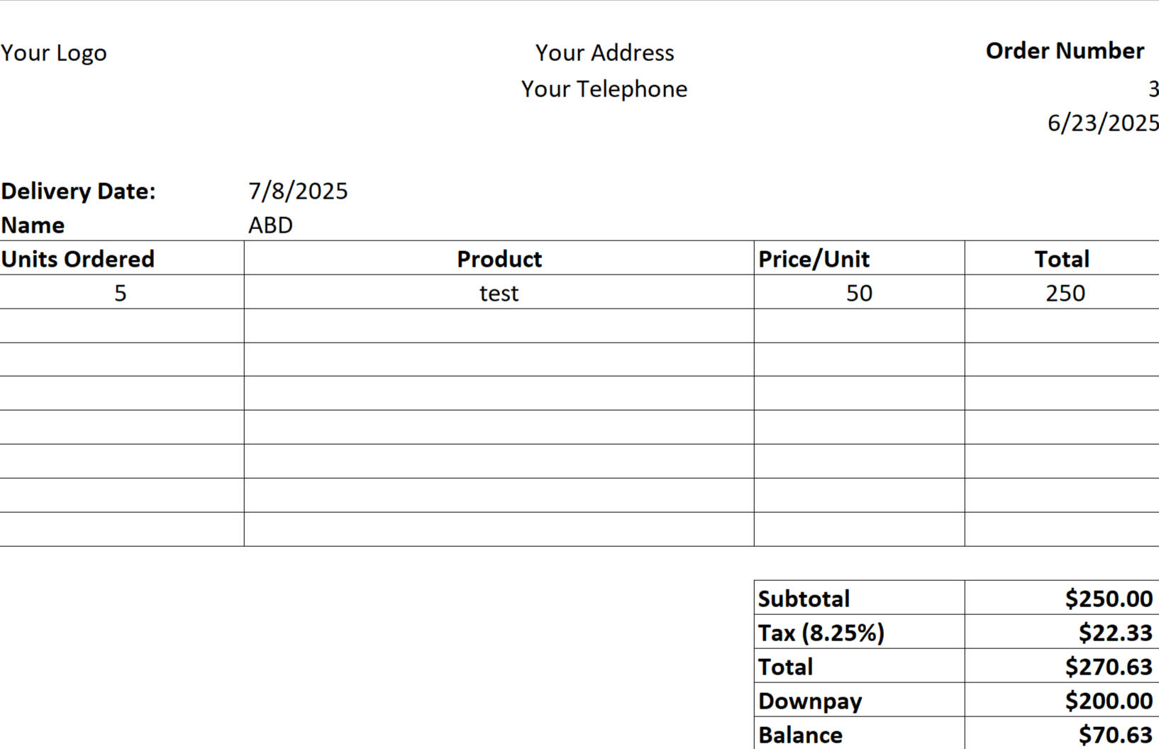 This program is the order tracker system and is a full suite to track any type of orders from customers in excel. You can keep track of each payment done to each order as well as print receipts, analyze data, update order status, and track transactions made.